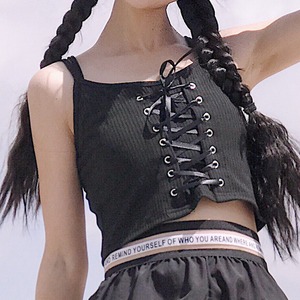 2017SS オルチャン 編み込み ビスチェ トップス